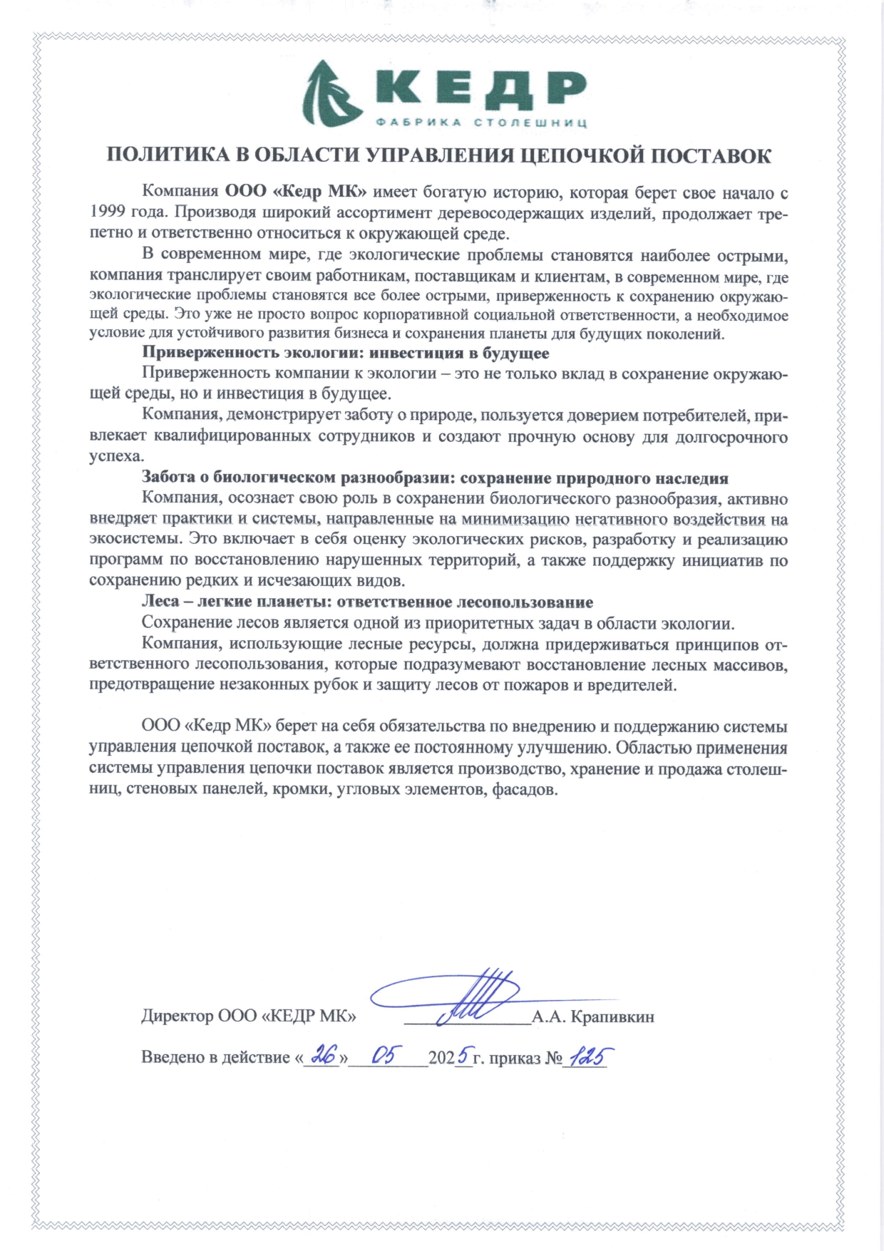 Наша система начинается с самого леса. Мы работаем только с теми поставщиками, которые разделяют наши ценности и придерживаются строгих стандартов ответственного лесопользования.