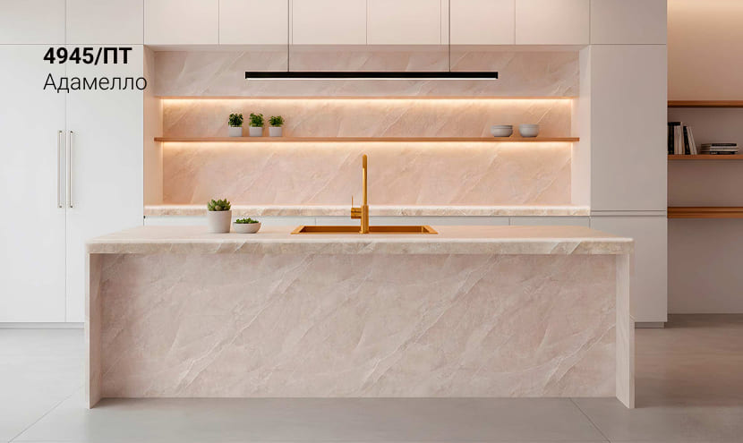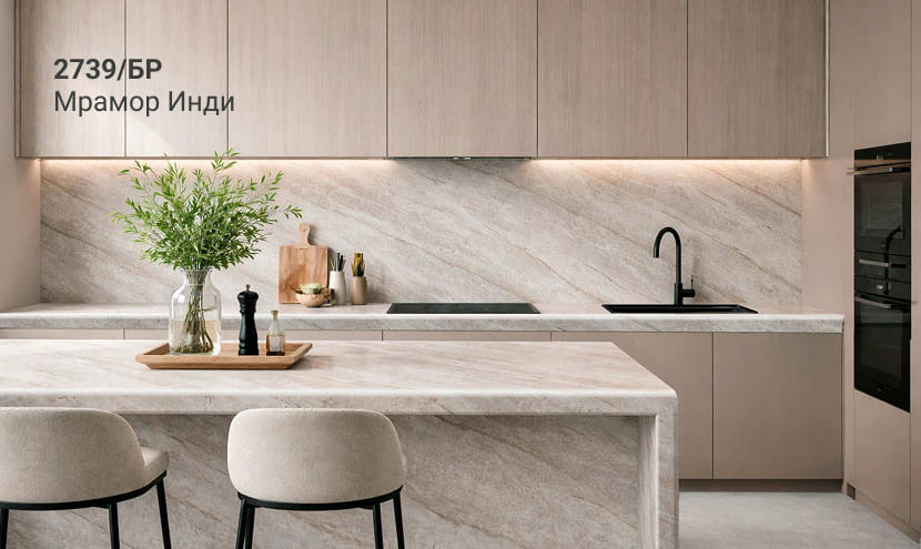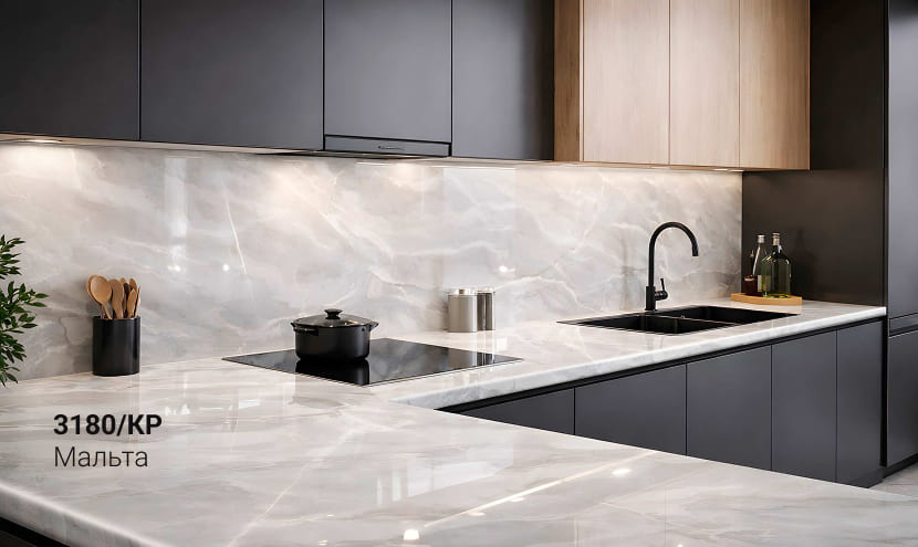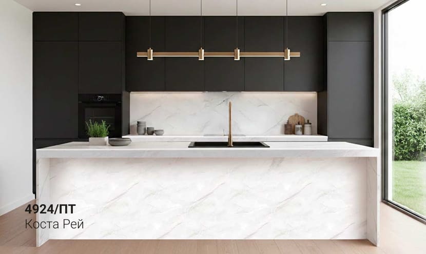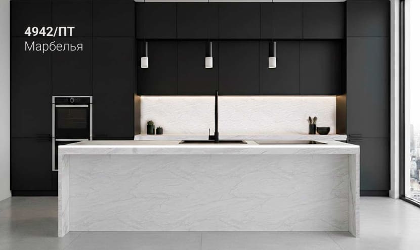 Толщина столешницы в 54мм превосходно передает красоту натуральных материалов и является отличной альтернативой натуральным деревянным и каменным столешницам.